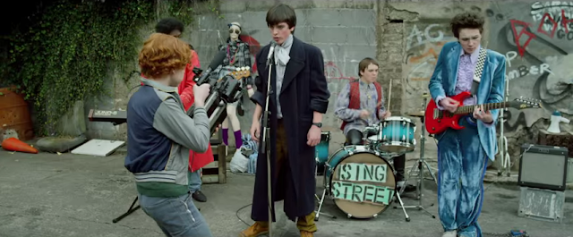 One of the continual joys of the film is the many ways creativity and song-writing become the choice Connor uses to deal with a situation. Whether he's anxious to impress a girl, angry at all the oppressive forces at school, stressed about his family situation, deliriously happy, or working through any other number of things, he uses music as a positive tool to process what he's feeling. And we benefit. Songwriting team Carney and Gary Clark channel the 80's feel but with a modern sensitivity that makes the original songs instantly lovable. After watching Sing Street I went right out and bought the soundtrack. While it includes several of the genuine 80's songs used throughout the movie from groups like Duran Duran and Motorhead, I skip over those and go straight for the originals. Carney prioritized casting actual musicians so the group of kids are more genuine in their performances. They sound great.