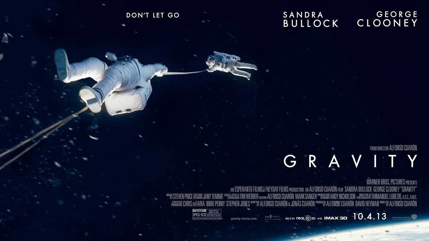 But the full credit for this film's gravitas (get it) will fall on the shoulder's of Alfonso Cuarón. He fills or shares most of the top production credits as Director, Producer, Writer and Editor. The writing credit is shared with his son, Jonas. A quick perusal of Cuarón's (Alfonso, not Jonas) IMDb page reveals his two biggest aspirations in his youth were to become an astronaut and a filmmaker. This film seems like a culmination of his career thus far and a jumping-off point for the next phase. At a time when Hollywood seems all about creating soulless sequels pumped up to 3D to drive more revenue, the existence and box-office success of Gravity, a film whose soul purpose is to serve a beautiful story of redemption and building hope in life, dually builds a bit of hope in an industry that must not have it all wrong if it can put someone like Alfonso Cuarón at the helm of a production.